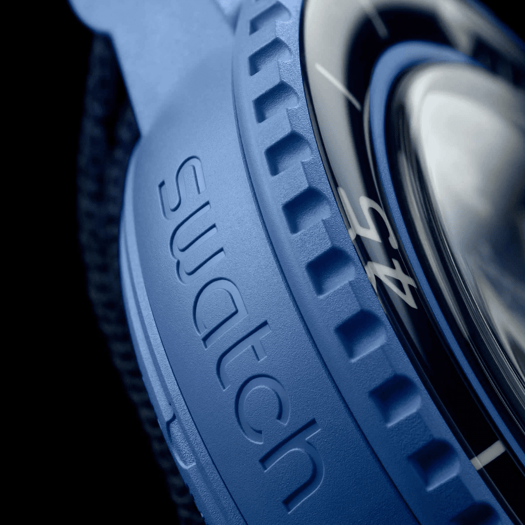 This watch is a collaboration between Swatch and which brand?