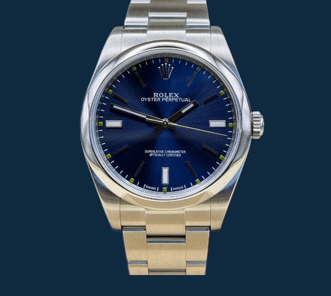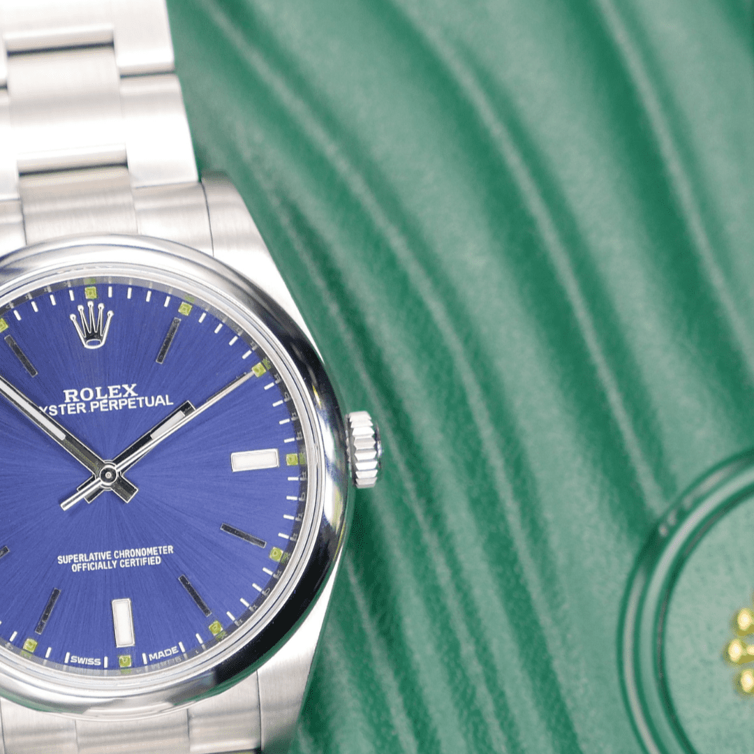 And here’s where it becomes truly special: only around 1 in 10 Oyster Perpetuals ever produced were 39mm, making this reference one of the rarest modern OP configurations. Combine that with the discontinued blue-and-green dial, and you have a serious collector’s piece with long-term desirability baked in.