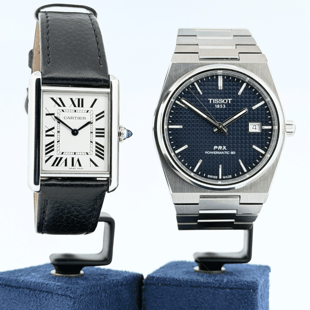 Paired alongside it is the Tissot PRX Powermatic 80 with a blue dial,  a modern everyday favourite that brings versatility, comfort, and exceptional mechanical value.